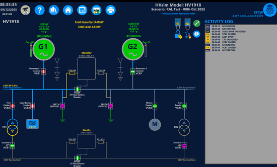 Interactive exercises replicate HV systems with interlocks, relays, instruments, and test modes — without energised hardware. No risk, no hardware failures, no downtime.